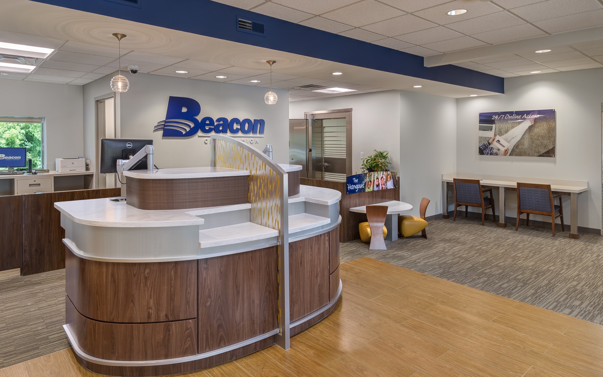 Beacon purchased and renovated a former medical building to enter into the Rushville market. The exterior brick and roof were updated to increase curb appeal and the interior was renovated to adhere to the brand and provide a bright, clean look. Beacon introduced dialogue pods, a kids area, and a community themed waiting area with graphics.