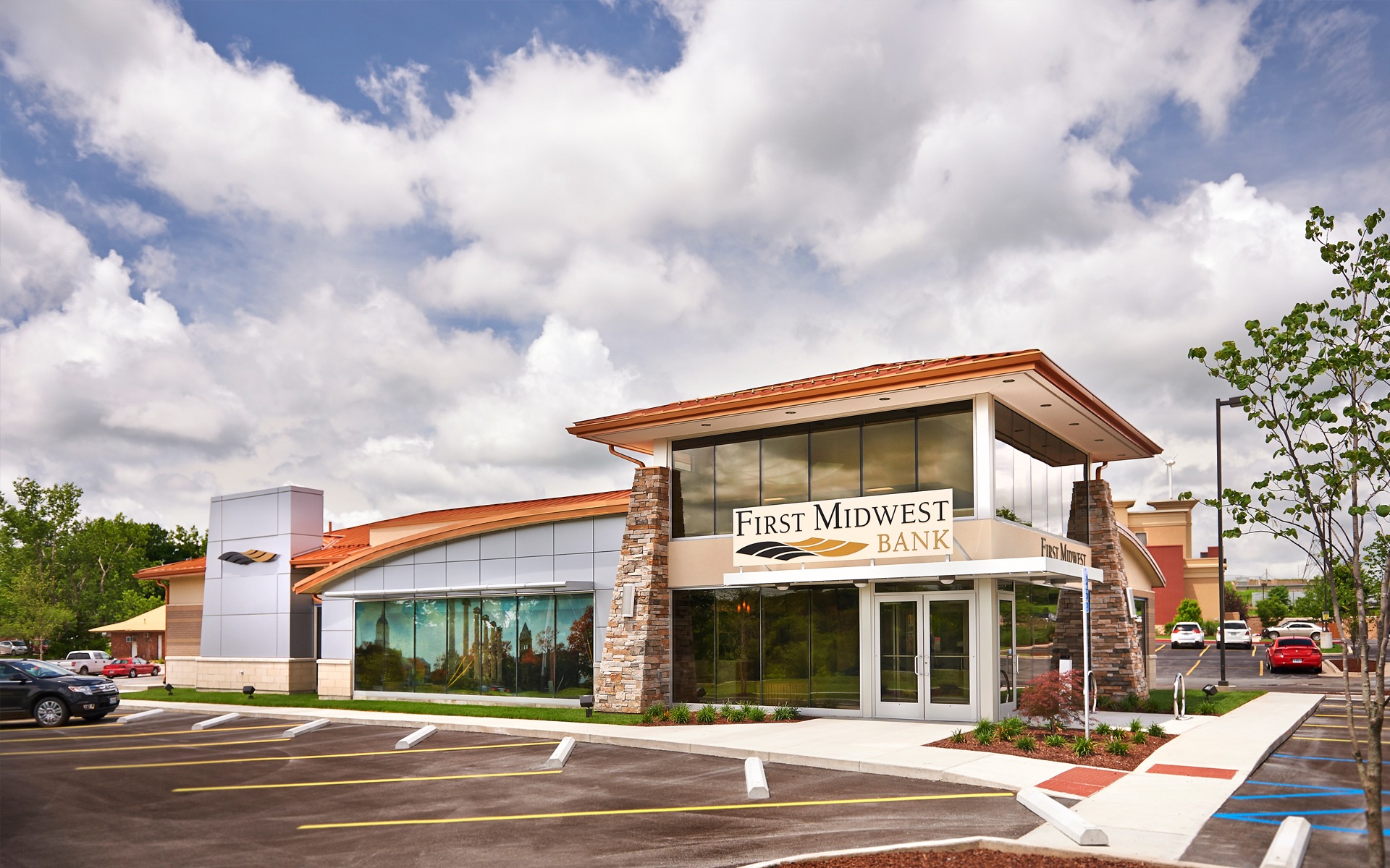 First Midwest Bank’s new 4,000 sf location is in a highly visible, open-air shopping center. The new building has 18 ft ceilings and expansive windows with large scale graphics. The interior incorporates brand colors resulting in a comfortable and sophisticated environment.
