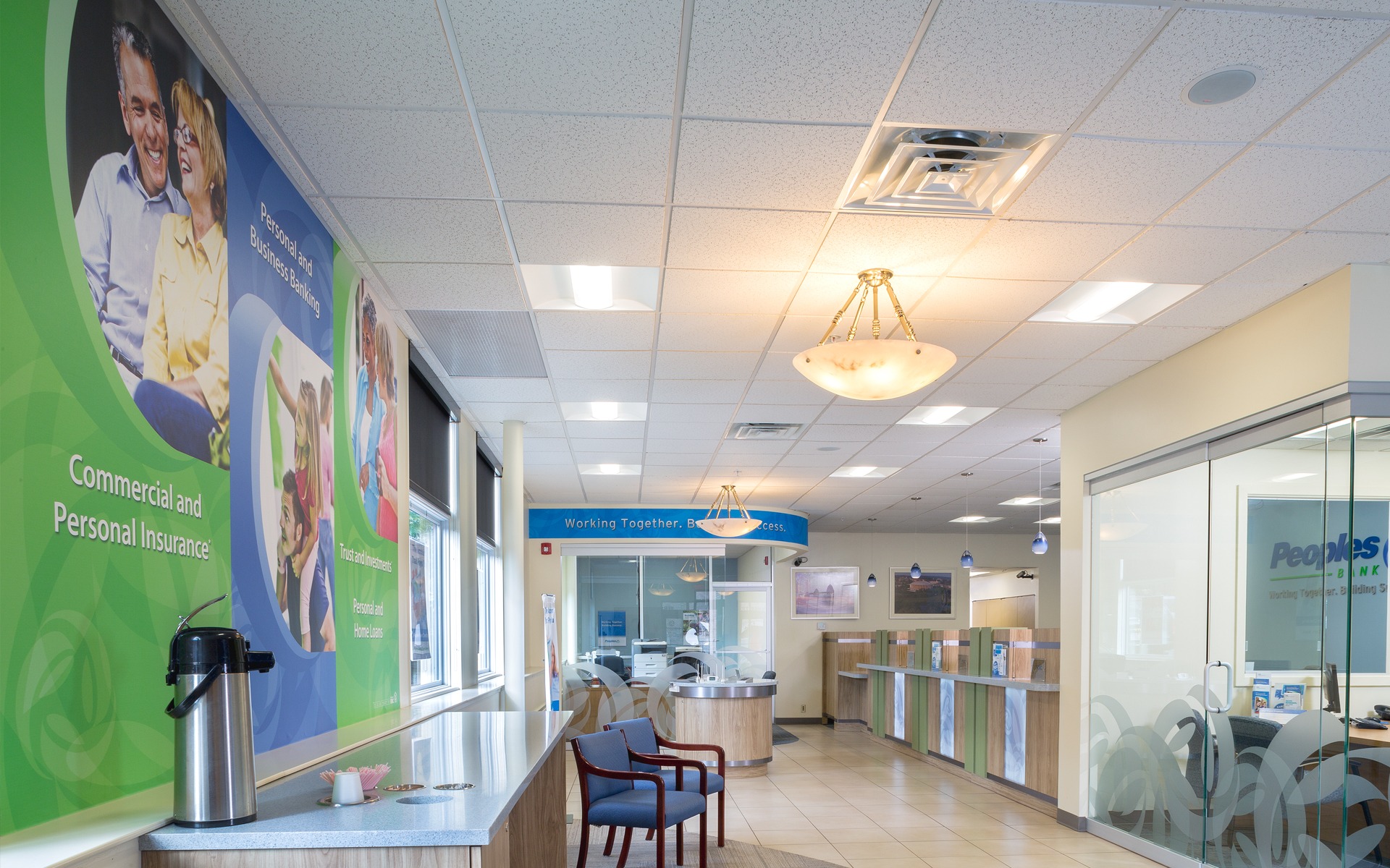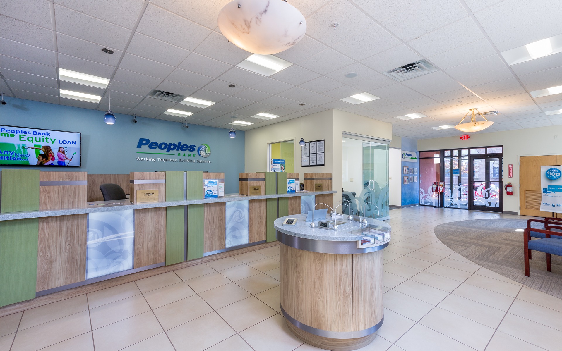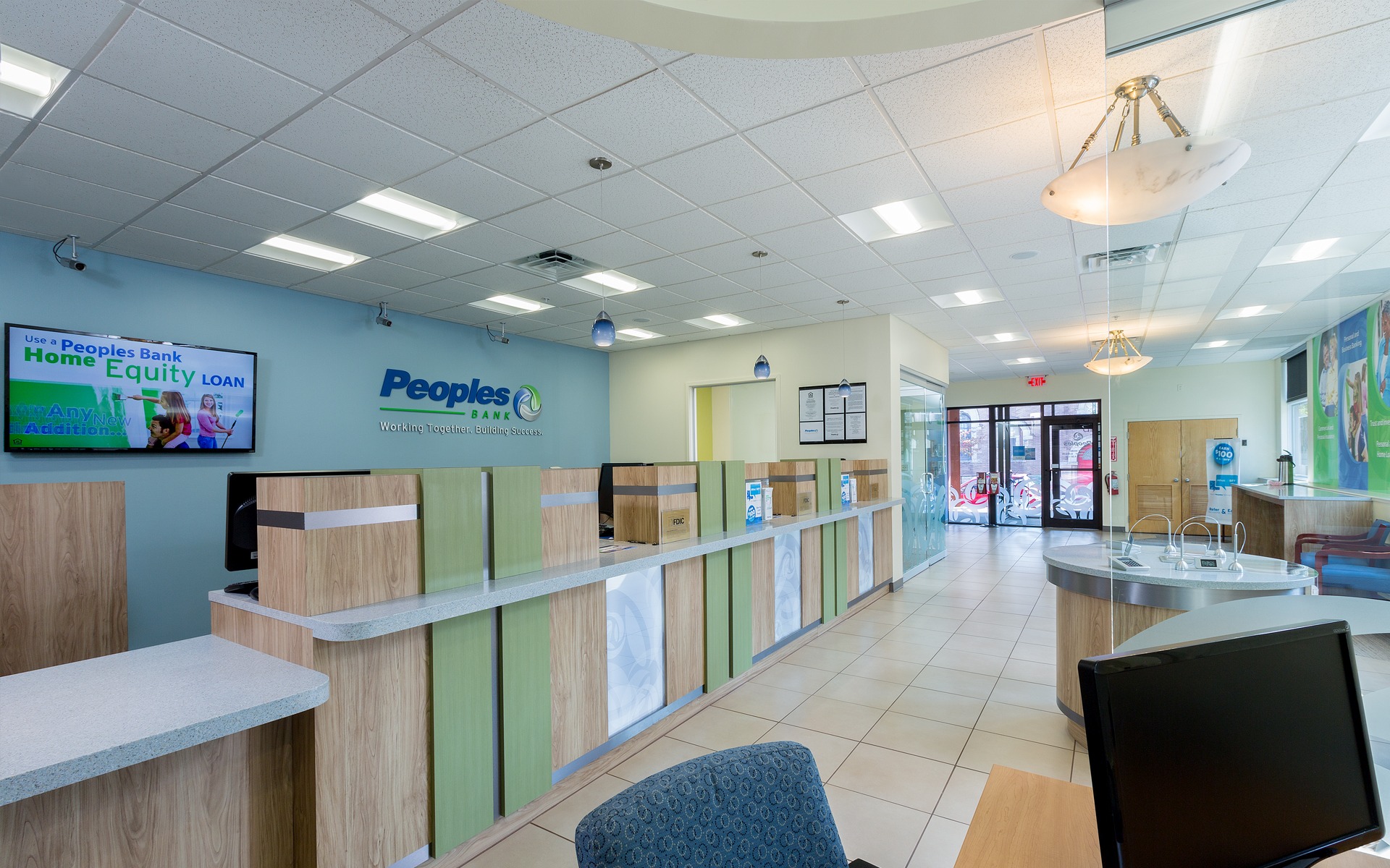 Through acquisitions, Peoples Bank extended their branch network to create a consistent brand identity among all locations. The Bank selected 36 locations to renovate. Each location was categorized as a Class A – C and assigned a level of finishes. The finishes will be applied to the next set of renovations as the process continues.