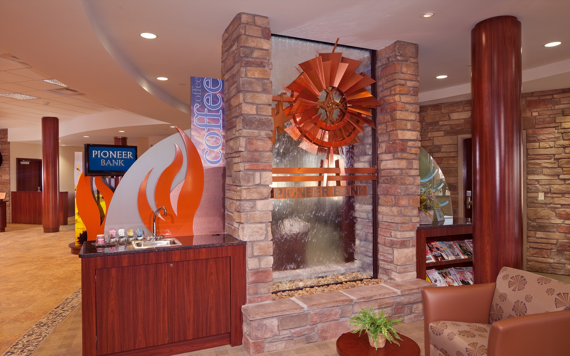 To maintain a consistent look, the new main office was inspired by the rich natural materials previously used in the Las Cruces branch. Executive offices and conference rooms encompass the second floor and a basement is used for archiving and IT offices.